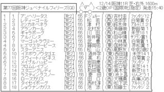 阪神JF 【枠順確定】12/14(日) 第77回阪神ジュベナイルフィリーズ(GⅠ) part3 706: 名無しさん@実況で競馬板アウト (ワッチョイW d74a-RvUY) 2025/12/11(木) 13:21:43.02 ID:a3klYS250今週阪神JF(GI)に出走予定のヒズマスターピース来年で引退となる国枝調教師と、本日... 2025.12.12 2 阪神JF